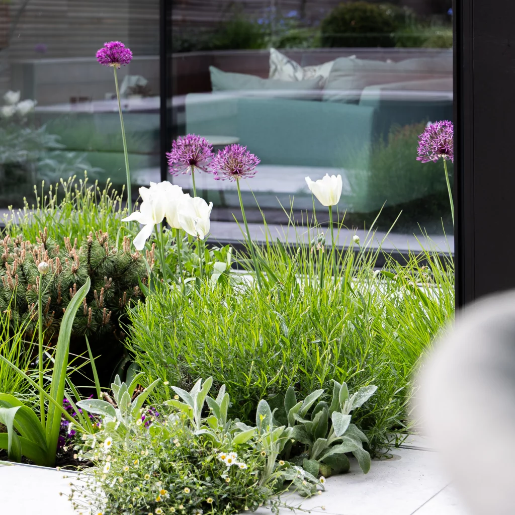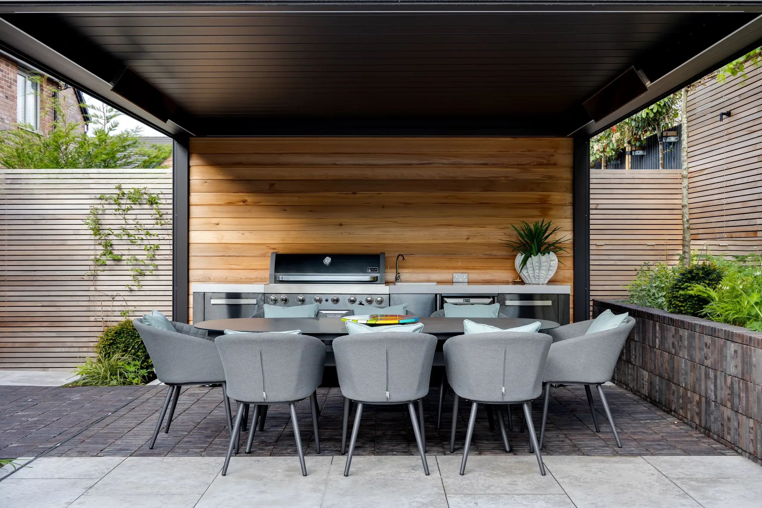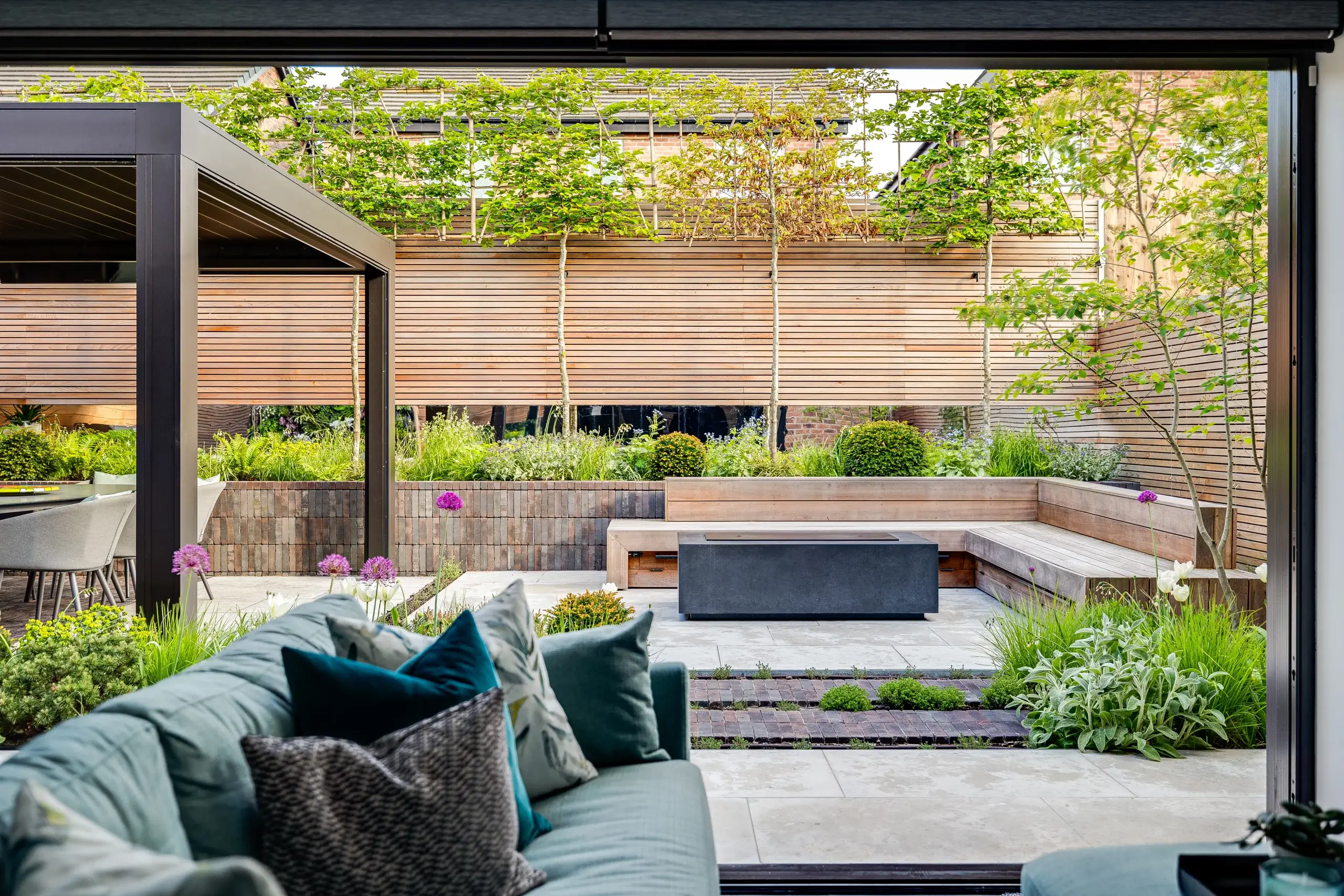 The result is a garden that feels structured and connected to the home. A huge panoramic slider now opens directly onto the space, making the transition from indoors to out completely effortless, whatever the weather.